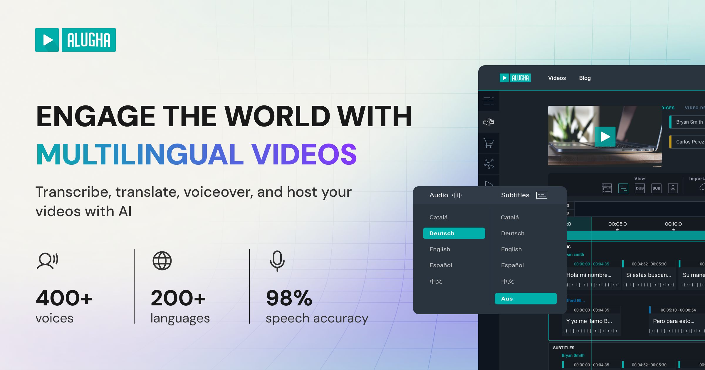 - ✓ og:description — alugha simplifies global communication with multilingual video hosting, translation in over 200 languages, AI-powered tools, and premium video integration. Empower your content to reach your global audience.