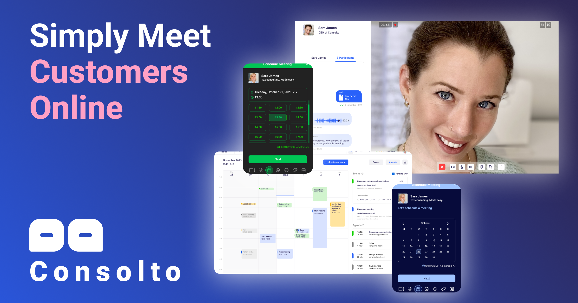 - ✓ og:description — Simply meet customers online, remotely. World’s most advanced video chat solution -- Screen Sharing, Appointment scheduling and live chat included!
