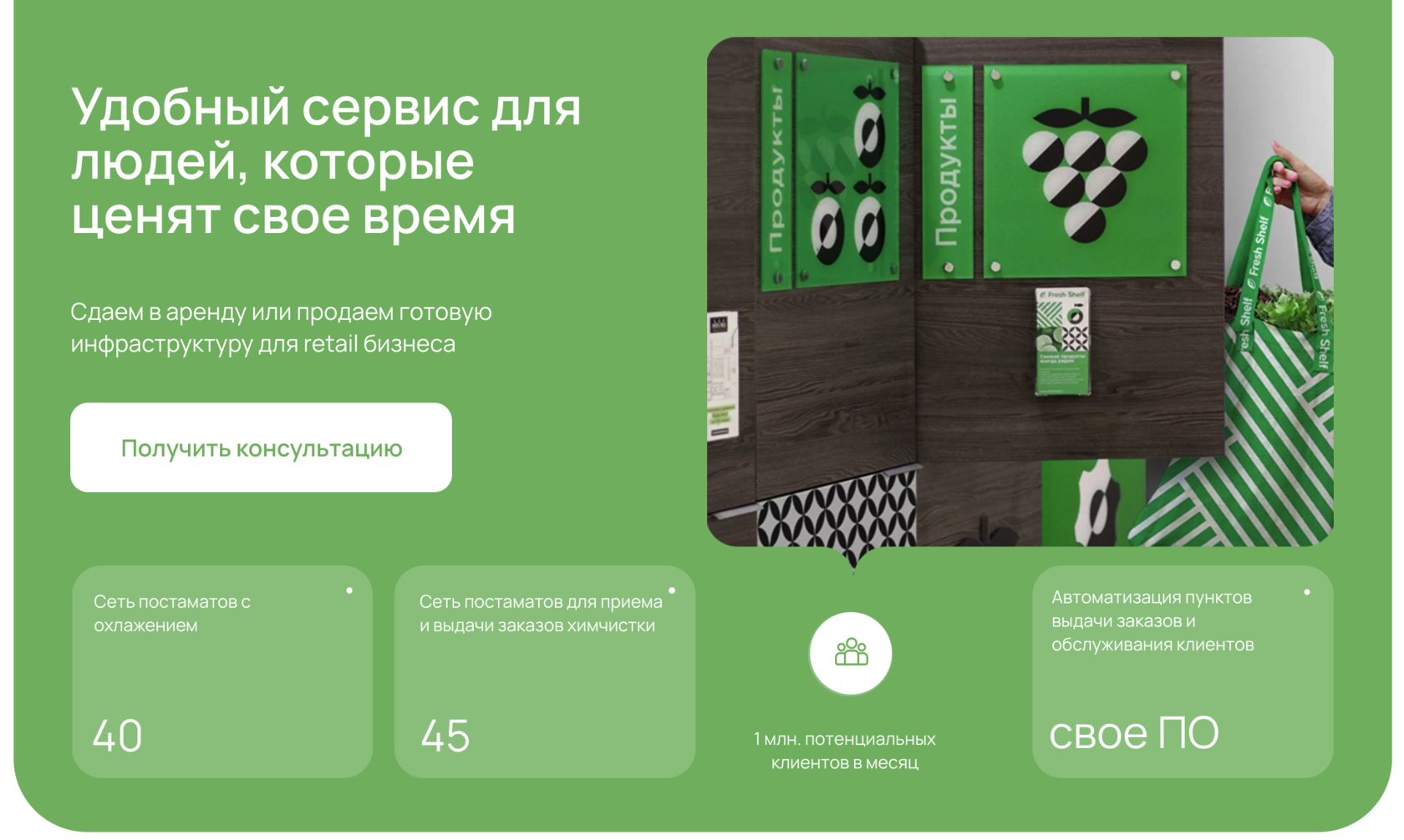 - ✓ og:description — Сдаем в аренду или продаем готовую инфраструктуру для retail бизнеса с аудиторией в 1 млн./мес потенциальных пользователей