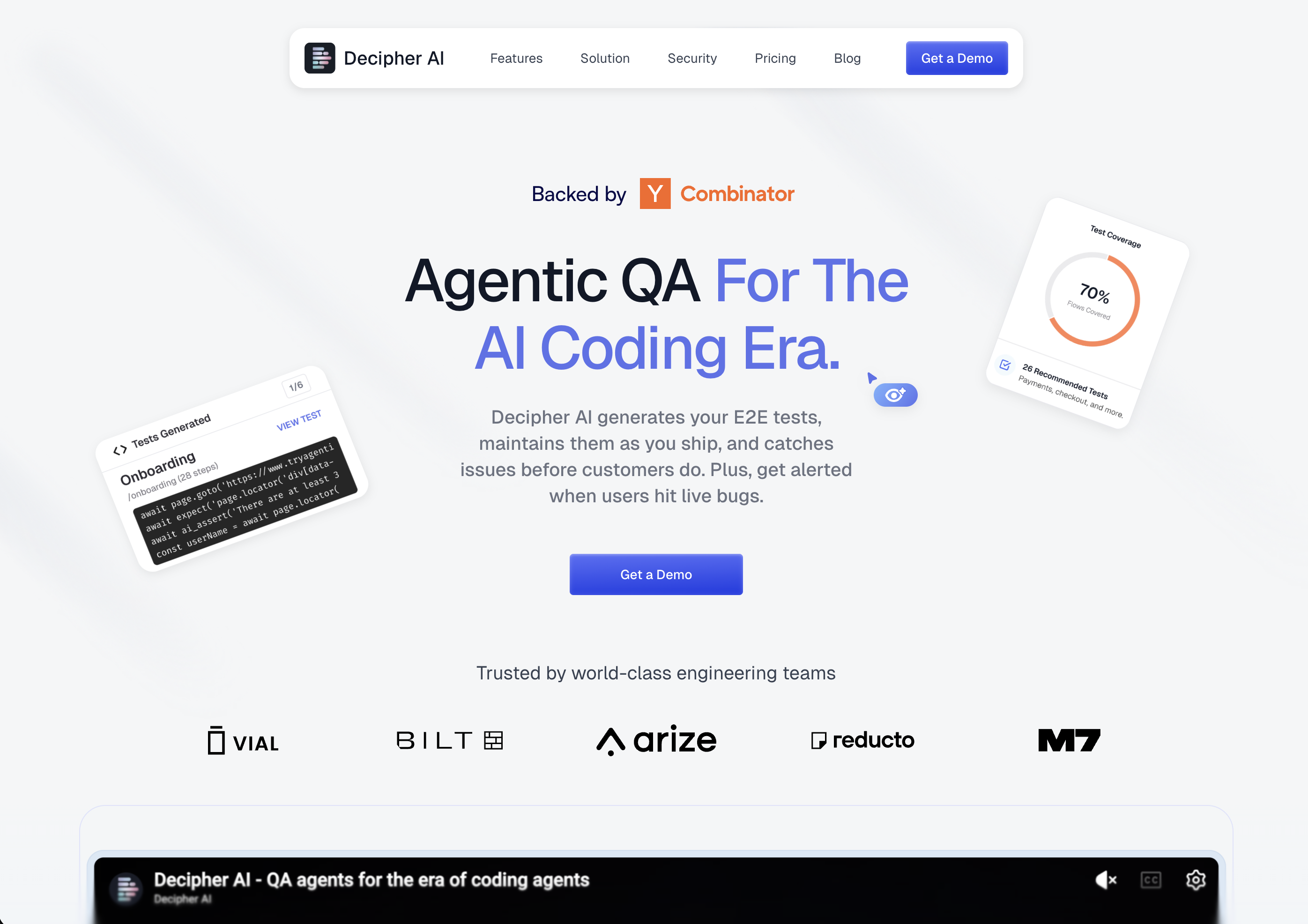- ✓ og:description — Decipher learns your product and writes reliable end-to-end tests on all your product flows. Plus get alerted when a bug hits production users.