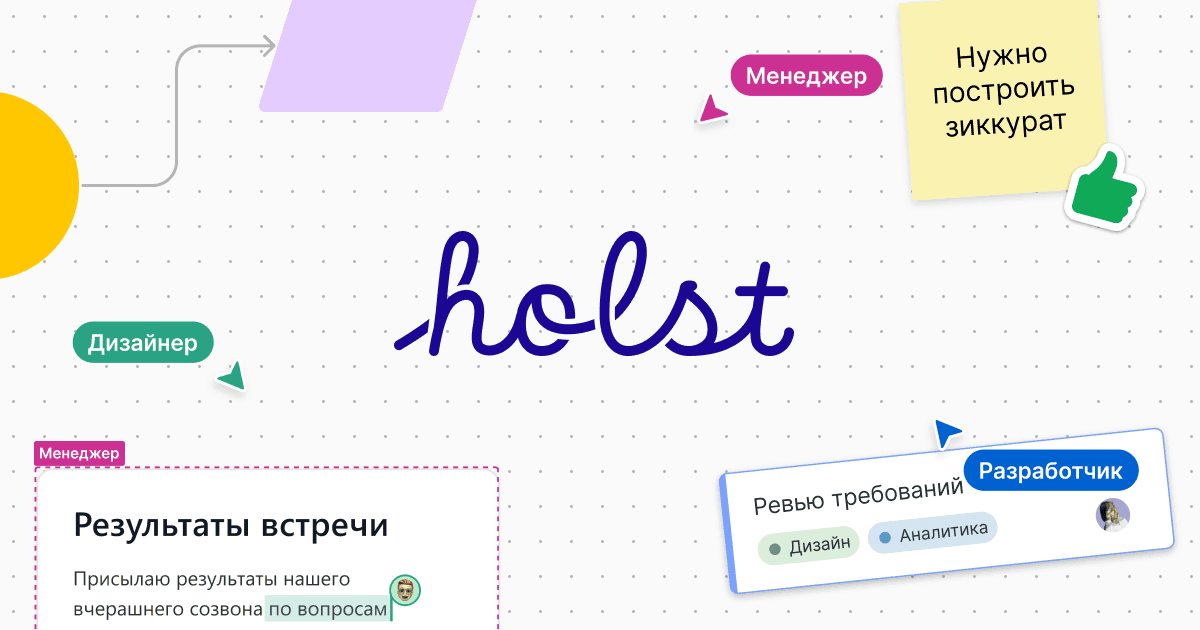 - ✓ og:description — Holst - это российская онлайн-доска, полнофункциональная замена Miro, в которой сосредоточены лучшие инструменты для визуального сотрудничества и креативного обмена идеями.