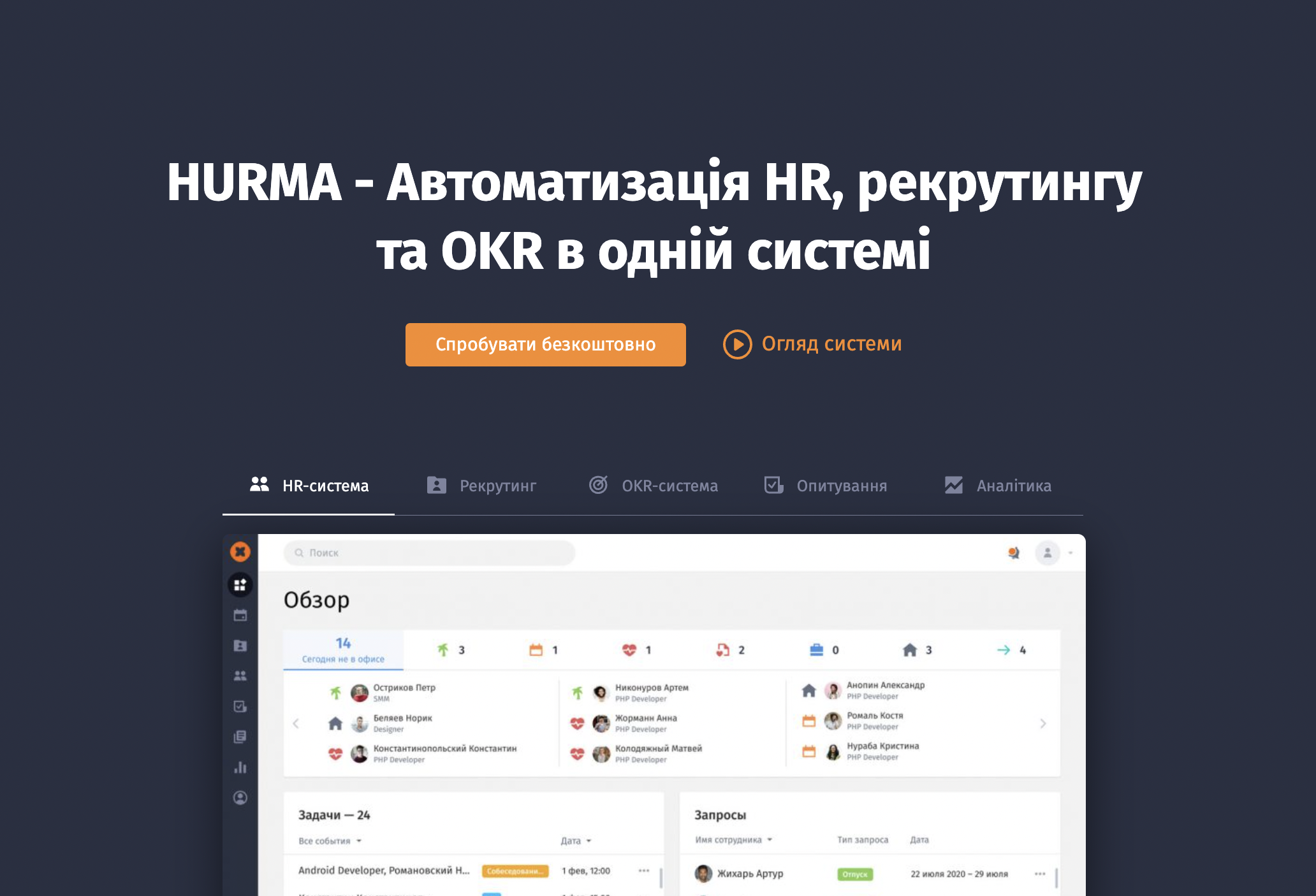 - ✓ og:description — З HRM-системою HURMA ви автоматизуєте процеси ✔ рекрутингу, ✔ HR та ✔ OKR у компанії. Впорядковуйте дані, проводьте онбординг та опитування, затверджуйте відпустки співробітників з нашою CRM для HR процесів.