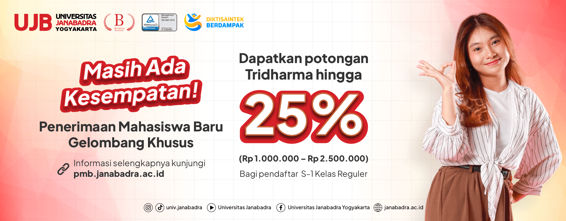- ✓ og:description — Raih gelar pendidikan tinggi di Universitas Janabadra Yogyakarta. Temukan pengalaman merdeka belajar yang memadukan pendalaman ilmu pengetahuan dengan landasan pancasila dan kebangsaan. UJB menjadi Kampus Kebangsaan #1 Yogyakarta