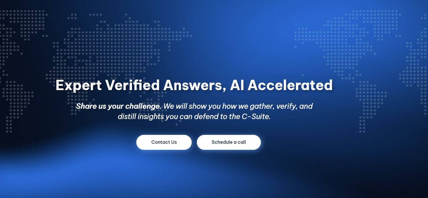 - ✓ og:description — Share us your challenge. We will show you how we gather, verify, and distill insights you can defend to the C-Suite.