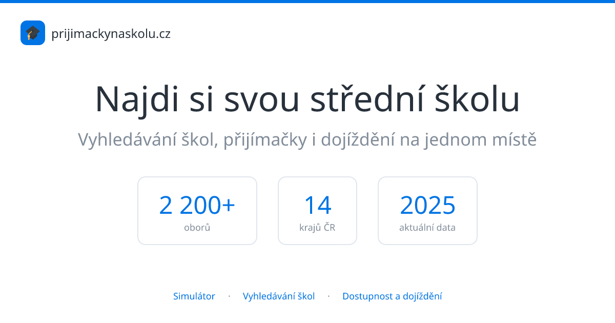 - ✓ og:description — Najděte si střední školu, zjistěte šance na přijetí a ověřte dostupnost dojíždění. Data z let 2024-2025.