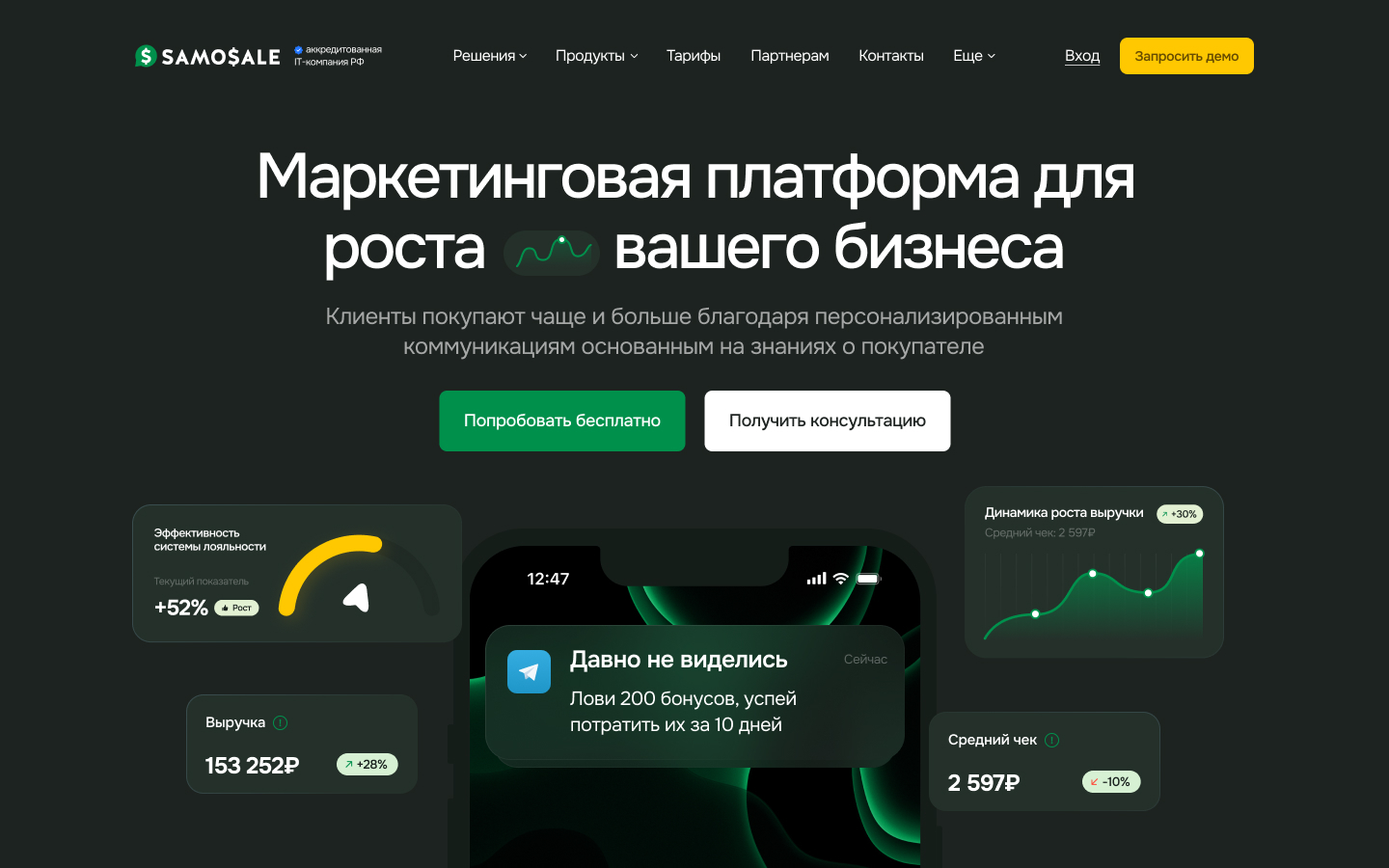 - ✓ og:title — SAMOSALE программа лояльности для бизнеса в телеграм и вконтакте