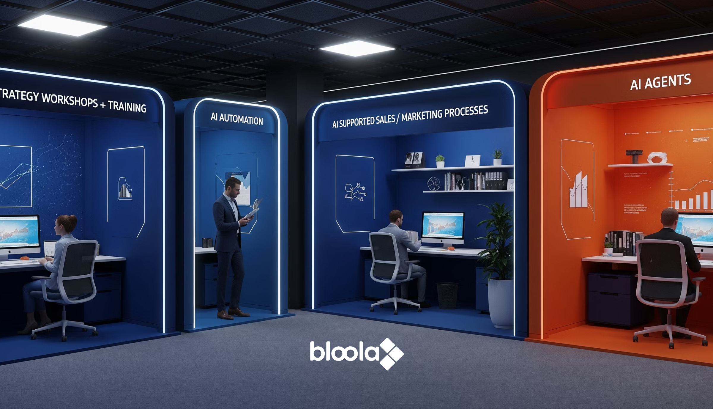 - ✓ og:description — KI Ausbildungsprogramme in Marketing & Vertrieb, KI Agenten, KI Workshops & Grundlagenausbildung, KI Automatisierung, M365 Copilot im Profieinsatz bloola - let AI work for you.