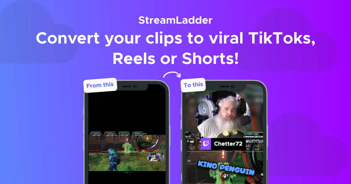 - ✓ og:description — StreamLadder is the easiest way to turn Twitch clips into TikToks, Reels, or Shorts. Free, no watermarks, and simple to use—just paste a URL and create in seconds!