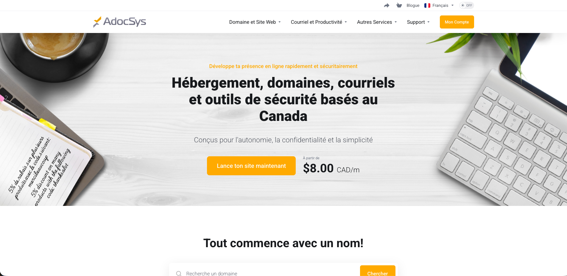 - ✓ og:description — Tu as besoin d'un site web, de comptes email, d'un nom de domaine ou d'un logo. AdocSys est une compagnie Canadienne qui a comme mission de t'aider à bâtir ta présence en ligne rapidement en respectant ta vie privée.