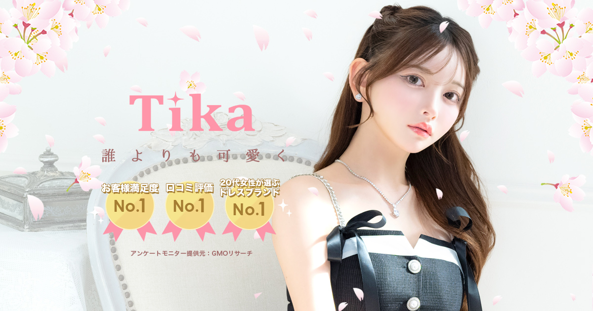 - ✓ og:description — 誰よりも可愛く♡キャバドレス通販Tika。トレンドのミニドレスやロングドレスまで豊富!体型カバーできる大きいサイズや、有名モデルやキャバ嬢着用ドレスや、新作も毎日更新。1万円以上で送料無料、即日出荷対応!