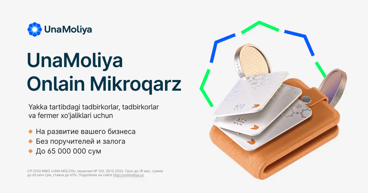 - ✓ og:description — ✔️ O‘zbekistonda garov va kafillarsiz onlayn mikroqarz oling ⭐️ Kartaga 65 000 000 soʻmgacha – tez va to‘liq onlayn.