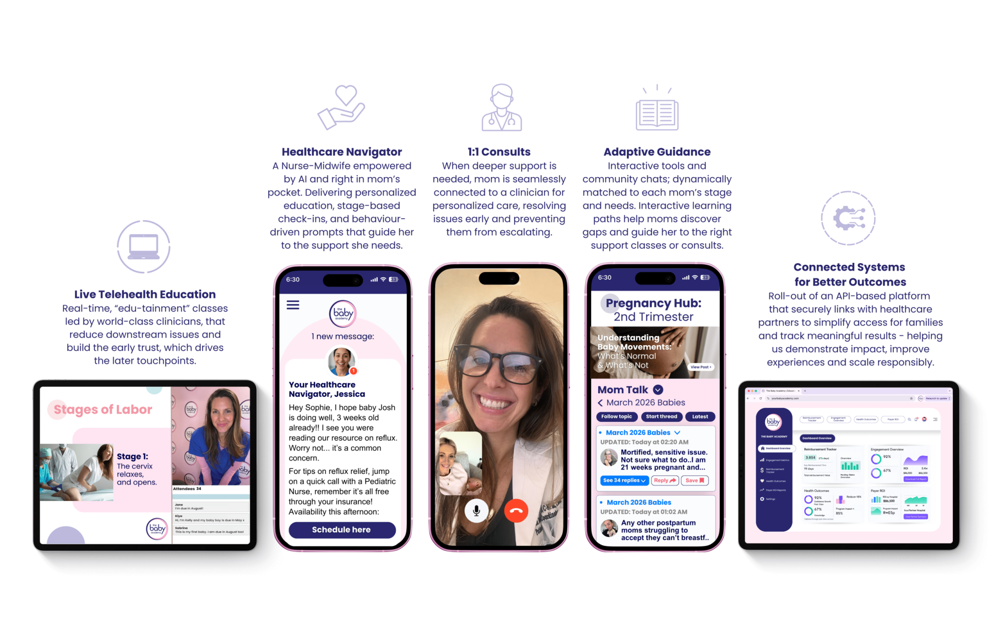 "text": "Explain the key features and how users interact with Yourbabyacademy."